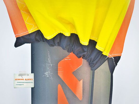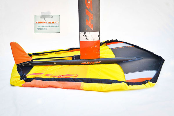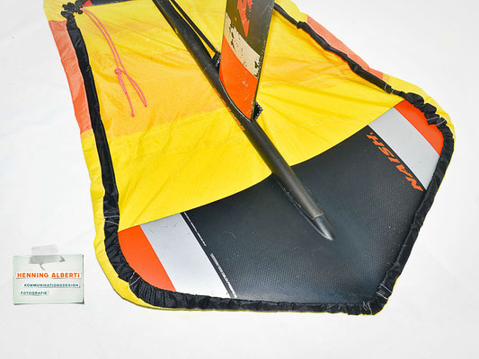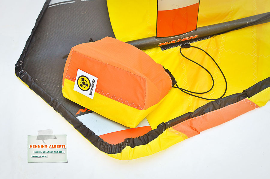 Kprzlich hat mir Lennart sein altes Kitesurffoil von Naish und ein Foilboard von Duotone geschenkt und mich damit nur bedingt glücklich gemacht, weil ich Kitefoiling schnell überdrüssig bin. Mache ich manchmal bei sehr wenig Wind, so dass man allein auf dem Wasser ist, durch die glatte Seeoberfläche bis auf den Grund sehen kann, die Vögel in den Bäumen am Ufer und die Stimmen der Segler weit auf der Förde hört… – Aber dann zieht es mich wieder bei viel Wind aufs Twintip. Für das Foil un ddas Deck habe ich mir jeweils ein Cover genäht und ein paar pfiffige Ideen für eine praktische Handhabung umgesetzt.